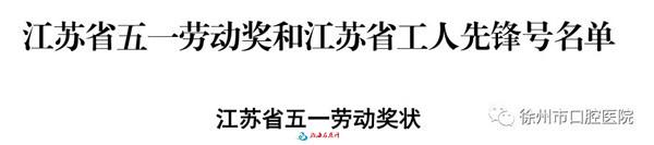 2019年4月29日下午,在江苏大剧院举办的《致敬!劳动者》江苏省庆“五一”表彰大会暨劳模先进事迹报告会上,徐州市口腔医院被授予“省五一劳模奖状”荣誉称号,这是全院的荣誉,更是对快速发展的徐州市口腔医院的肯定和认可。