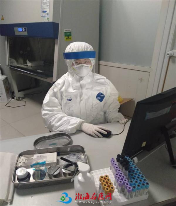 疫情蔓延,危急时刻,徐州医科大学附属医院作为新型冠状病毒肺炎定点收治医院开设发热门诊接收诊治疑似病人,检验科承担着冠状病毒肺炎疑似患者的标本采集和检测任务,为临床提供实验室指标和准确诊断信息依据,充当着临床一线医生的“火眼金睛”。新型冠状病毒传染性强,已经有医院检验人员感染的报道,但是疫情就是命令,检验人纷纷报名请战,很快组成了由宋爽、孙静芳、徐娜、赵树龙、朱迎星5人组成的第一批突击队进驻本部发热门诊值班。
