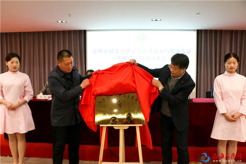徐州市科学技术协会副主席宋恒、徐州市卫健委副主任胡传峰共同为“徐州市健康管理学会人才培养与职业发展专业委员会”揭牌。