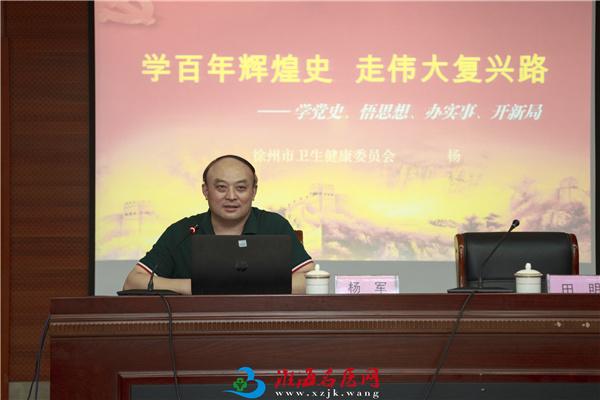 市卫健委杨军同志以《学百年辉煌史走伟大复兴路—学党史、悟思想、办实事、开新局》为题,从当前实际出发,深入浅出,为大家上了一堂生动的专题党课。他主要从百年之际学党史的重大现实意义和中国共产党百年历史的经验与启示两个方面,阐述了党的百年历史也是我们党不断保持党的先进性和纯洁性、不断防范被瓦解、被腐化的危险的历史,要教育引导广大党员干部通过总结历史经验教训,着眼于解决当前遇到的现实问题,不断增强拒腐防变和抵御风险能力。