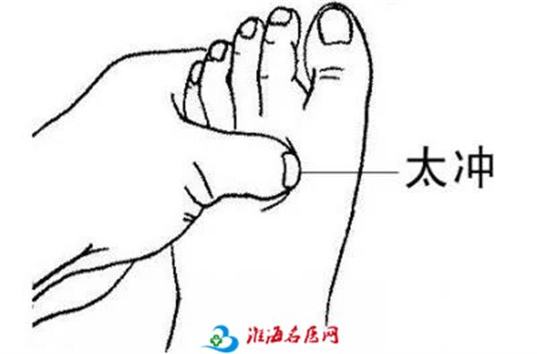 太冲穴位于足背部,第一、二趾骨结合部之前凹陷中。