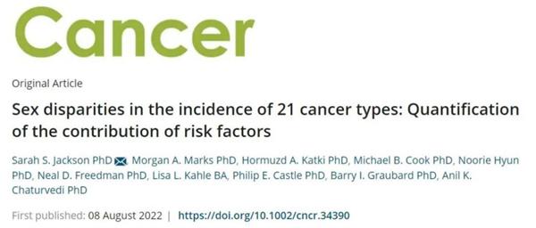 ① Sarah S. Jackson et al., (2022) Sex disparities in the incidence of 21 cancer types: Quantification of the contribution of risk factors. Cancer Doi: https://doi.org/10.1002/cncr.34390