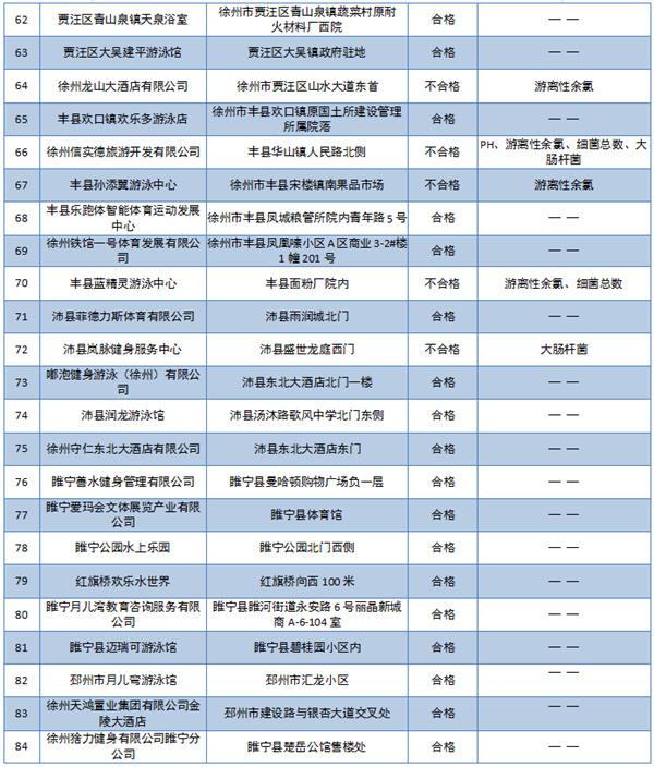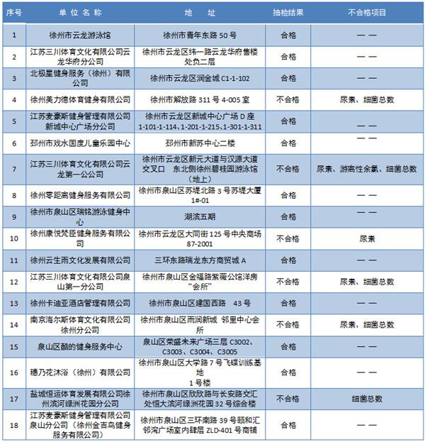 2022年徐州市游泳场所水质采样检测结果公示