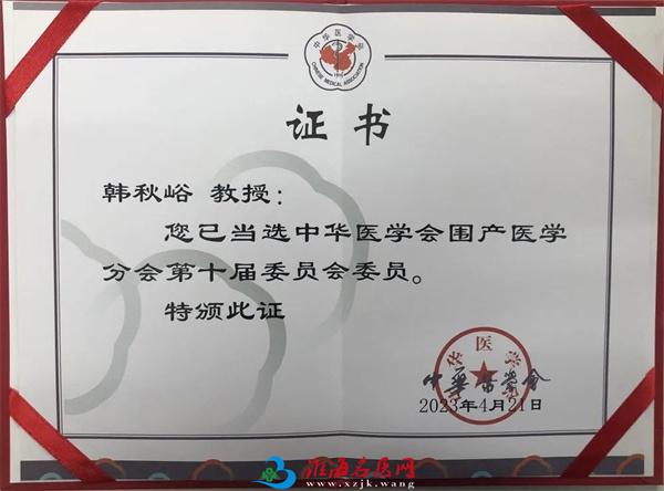 2023年4月21日,中华医学会在北京举行围产医学分会换届选举大会,大会选举产生了中华医学会围产医学分会第十届委员会组成人员名单,徐州医科大学附属医院产科韩秋峪主任当选中华医学会围产医学分会第十届委员会委员。