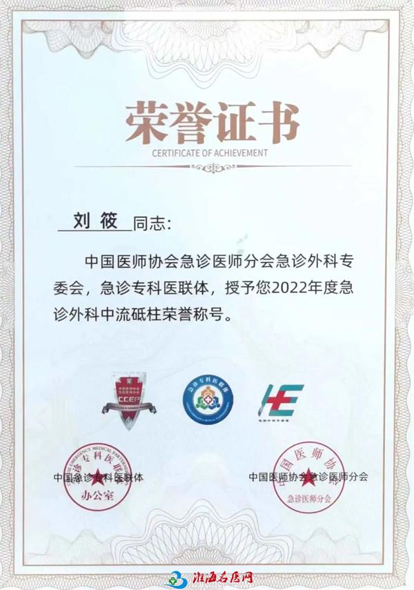 为表彰在全国急诊外科工作中涌现出的一批先进个人,大会特设置急诊外科“中流砥柱”奖项。经过前期个人申报、急诊外科专委会及中国医师协会层层评选,徐医附院医务处处长、急诊医学科刘筱博士荣获“急诊外科中流砥柱”荣誉称号。获此荣誉的全国仅10人,江苏省仅1人。这既是对刘筱博士的褒奖,也是对徐医附院急诊创伤中心建设工作的认可,更是国家级学会对徐医附院高质量发展的肯定。
