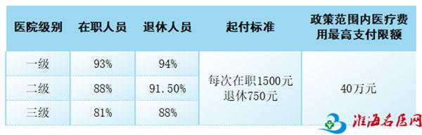 从表格中可以清晰看到,不同级别的医院,起付线、报销比例均不同;职工与居民,在职与退休,报销比例也不同。