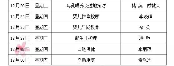 徐州市妇幼保健院2016年12月孕妇学校课程安排