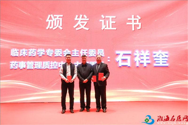 徐州市卫生健康委党委书记、主任,徐州市医学会理事长黄广振向新当选的临床药学专委会主任委员和药事管理质控中心主任委员颁发证书。