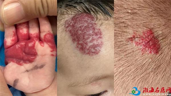 【门诊】三个典型病例,病例1:患儿 女 出生后一周家长无意间发现患儿体表淡红色斑块,未予重视,满月后逐渐变成红色;病例2 女 出生后二周发现体表红色肿物,两月龄时开始逐渐凸起;病例3: 男 患儿出生后20天左右发现体表红色肿物,并快速增大伴皮下青紫色改变,四月龄时明显隆起,伴皮温增高。