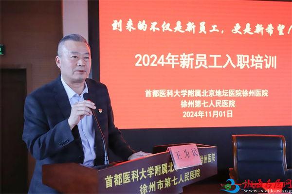 院党委书记王为民介绍了医院的历史沿革和发展历程,并向新职工们提出三点希望:一是牢固信念,统一思想,始终坚定信仰、不忘初心、保持忠诚。二是增强责任意识,磨练本领,打好安身立命根基,不断提升自身医疗技术水平和科研教学能力。三是志存高远,增强履职能力,勇于担当责任重担,在医院高质量发展中展现青春作为、贡献青春力量。王为民指出,在以后的工作中,要将自己置身于医院发展的大环境中,不断加强学习,结合自身、岗位、科室、医院实际,学深悟透、有的放矢、精准发力,真正提高为患者服务的本领,为国家区域医疗中心的建设奉献力量,为医院的腾飞添砖加瓦!