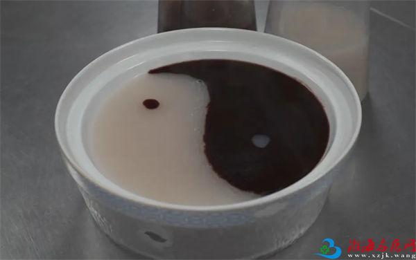中医讲究阴阳平衡,天人合一。第二道药膳莲藕太极粥延续中医传统思想。通过黑粥食材薏米、桑葚、粳米、莲子等与白粥食材梨、莲藕、大米等食材相互搭配。桑葚滋阴补血,熟莲藕健脾开胃、益血生肌。阴阳协调总体上起到滋养脾胃、益肾固精、滋阴润燥、养心安神等作用。