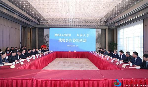 签约活动上,刘景、邱海波代表徐州市人民政府与东南大学签署战略合作协议。东南大学医学院党委书记、院长姚红红,徐州市卫生健康委员会党委书记、主任黄广振签署东南大学与徐州市人民政府共建“东南大学附属徐州市中心医院”合作协议。滕皋军、徐州市中心医院党委书记王培安为“东南大学附属徐州市中心医院”揭牌。