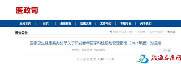 按照党中央、国务院决策部署,为指导规范老年医学科建设与管理,推动完善老年人健康支撑体系,提升老年医学医疗服务能力,满足老年人医疗服务需求,我委于2019年制定印发《老年医学科建设与管理指南(试行)》。在总结老年医学科建设管理经验基础上,我们修订形成《老年医学科建设与管理指南(2025年版)》。现印发给你们,请遵照执行。