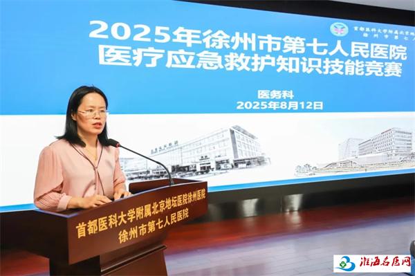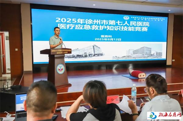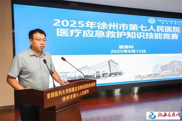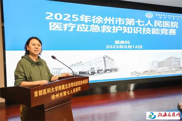 为全面提升医务人员应急救治实战能力,锻造一支技术精湛、响应迅速的医疗“尖兵”,8月12日,北京地坛医院徐州医院(徐州七院)举办2025年医疗应急救护知识技能竞赛。比赛由医务科科长王邺珩主持,全院临床、医技科室21支队伍同台竞技。
