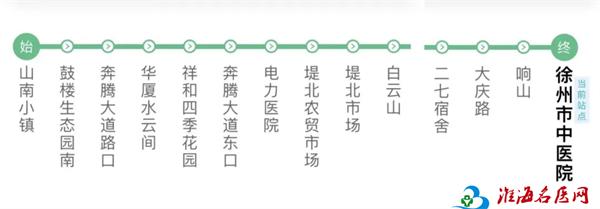 山南小镇、鼓楼生态园南、奔腾大道路口、华厦水云间、祥和四季花园、奔腾大道东口、电力医院、堤北农贸市场、堤北市场、白云山、二七宿舍、大庆路、响山、徐州市中医院。