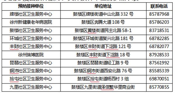 目前,全区各社区卫生服务中心、定点医疗机构均可提供流感疫苗接种服务。具体接种单位请参照下表