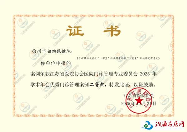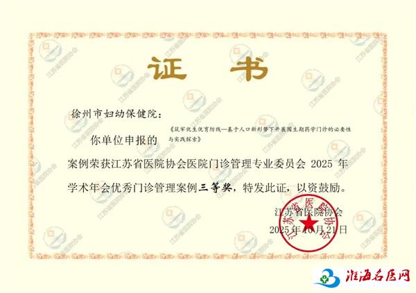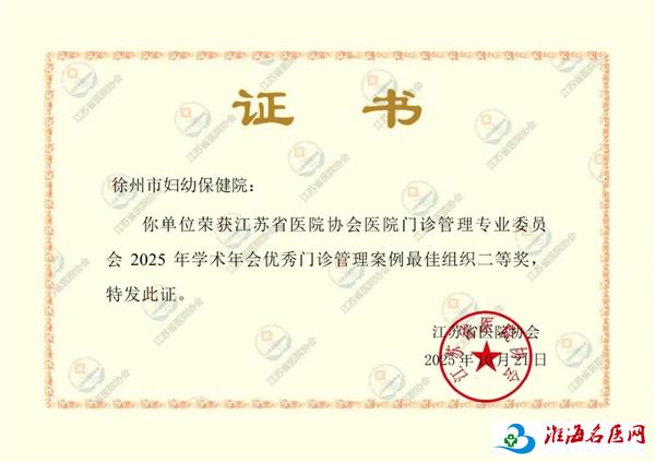 您现在的位置是:淮海名医网 > 全网新闻 > 女性健康 > 喜报!徐州市妇幼保健院在2025年江苏省门诊优秀管理案例评选中荣获佳绩!