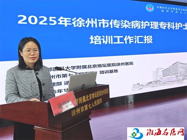 护理部副主任逯艳丽作《2025年徐州市传染病护理专科护士培训工作汇报》,从课程设置、理论教学、技能实操、临床实践、考核评价等多方面回顾了培训班过程与成果。她指出,本次培训班有效提升了学员们在传染病危重症护理、院感控制、突发公共卫生事件应对等方面的核心能力,达成了预期培养目标。