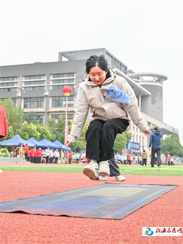 立定跳远场地内,运动员们屈膝、摆臂、蹬地、跳跃,每一个动作都干脆利落,全力向着更远的距离冲刺。