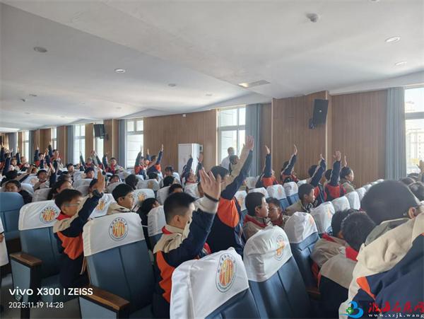 讲座中穿插的提问互动环节将现场气氛推向了高潮。“造成近视的原因有哪些?”讲解人员话音刚落,孩子们便纷纷举手踊跃发言。从长时间近距离看书、户外活动过少,到读写姿势不良、采光照明不合格,再到睡眠时间不合理、长时间浏览电子产品,孩子们的回答全面而准确,表现出了他们对近视问题的深刻认识。在讲到如何防控近视时,让同学们知道了教室采光照明要达标,每个月要调换座位,避免因长期固定座位而导致视力偏差;每学期要随身高调整课桌椅高度,确保读写姿势的正确;还要保证充足的户外活动时间,让眼睛在大自然的怀抱中得到放松和锻炼。最后讲解人员还告诉同学们,要选择适合自身的框架眼镜、角膜塑形镜等科学的方法来控制近视,切不可盲目听信偏方,以免延误治疗。