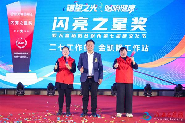 冬日暖阳,温情满怀。12月5日上午,郢天富粞粮仓徐州第七届硒文化节在徐州全季酒店隆重举行。活动以“硒望之光 唱响健康”为主题,通过用心宣传,让更多的人科学认识硒、补上硒,为健康中国尽一份力,推动发展富硒产业,助力乡村振兴。徐州医科大学附属医院前党委副书记、副院长任泽强,徐州营养学会会长潘萍,郢天富粞粮仓西中华区总经理齐振国,郢天富粞粮仓省总董兵,郢天富粞粮仓福利物资发放办主任于佳慧,徐州电视台大健康渠道负责人万增绪,徐州天之健生物科技有限公司总经理牛春宇,郢天富粞粮仓徐州运营负责人郭丹,以及市场监督管理局的领导和嘉宾出席活动,徐州电视台、淮海名医网等主流媒体共同参与这一盛典。