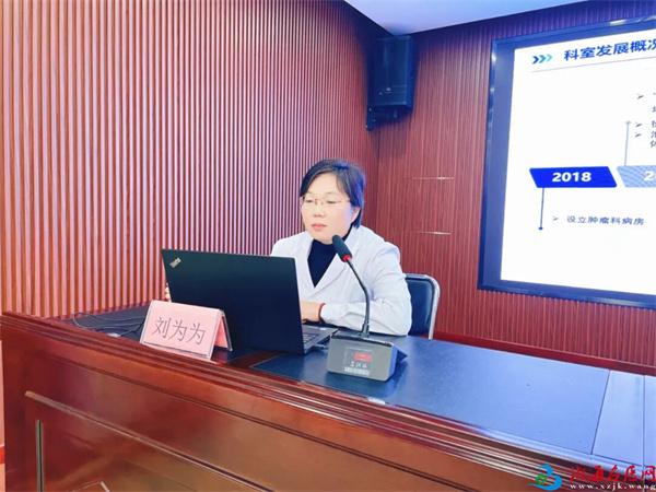 刘为为主任(铜山区中医院医务科副科长、肿瘤科主任)汇报了“铜山区中医院联盟建设情况”,分享了临床实践与学科建设经验。
