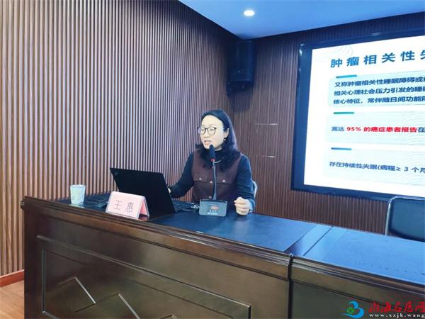 王惠护士长(扬州市中医院肿瘤科护士长)分享了“耳穴疗法治疗肿瘤相关性失眠的研究进展”。