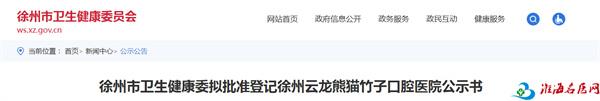 徐州市卫生健康委拟批准登记徐州云龙熊猫竹子口腔医院公示书