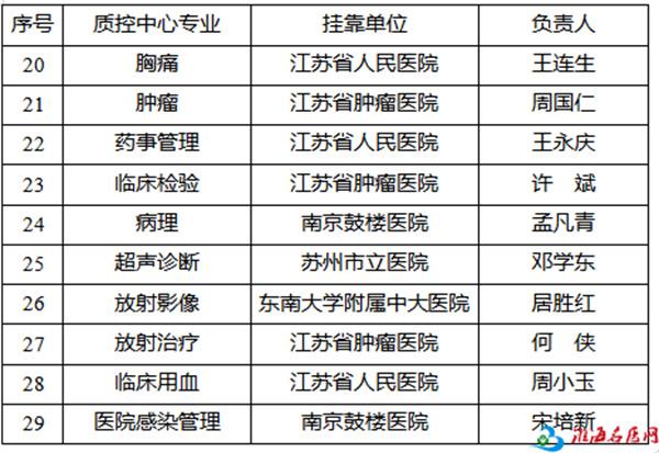 拟继续连任的呼吸内科等29个专业省级质控中心挂靠单位和负责人名单