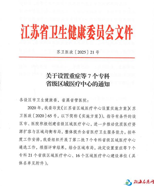 近日,江苏省卫生健康委员会发布《关于设置重症等7个专科省级区域医疗中心的通知》,公布江苏省第二批省级区域医疗中心名单,徐州医科大学附属医院新增4个,分别是: