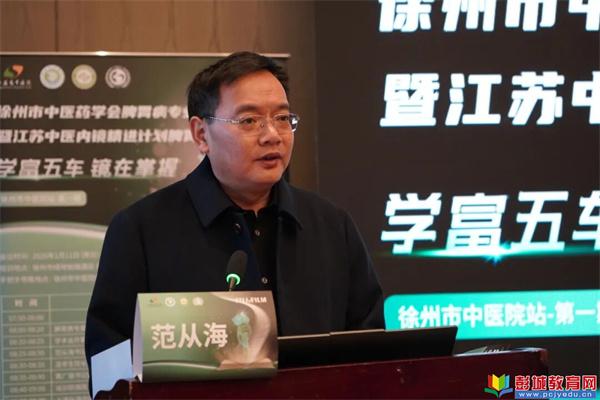 徐州市中医院党委书记范从海在致辞中,对会议的召开表示热烈祝贺,并向与会专家致以诚挚欢迎。他简要介绍了医院的发展历程,重点分享了医院脾胃病科的建设情况。作为徐州市中医临床重点专科,脾胃病科坚持中西医并重,形成了特色诊疗模式。他表示,本次会议为同行提供了交流的平台,期待与会者深入切磋,共同提升脾胃病诊疗水平。
