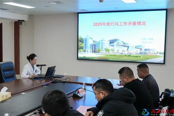 行风办负责人盛晴介绍了徐州一院2025年度行风建设工作开展情况,重点围绕服务流程优化、巡查整改落地、医德医风与职业道德教育等,全面阐述了取得的阶段性成效,并对下一阶段行风建设的工作重点作了具体介绍。