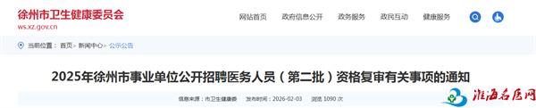 根据《2025年徐州市事业单位公开招聘医务人员(第二批)公告》,现将2025年徐州市事业单位公开招聘医务人员(第二批)资格复审有关事项公告如下: