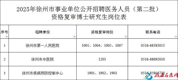 1.博士研究生岗位:2025年徐州市事业单位公开招聘医务人员(第二批)博士研究生岗位线上报名成功的人员参加资格复审,进行资格复审的岗位详见附件1。