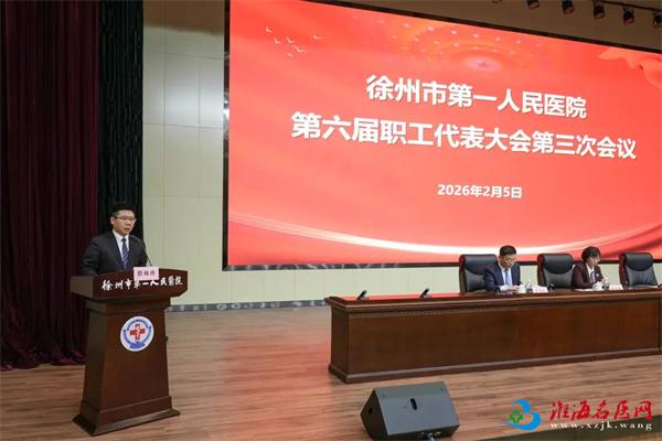 2月5日,徐州市第一人民医院第六届职工代表大会第三次会议在庄严的国歌声中拉开帷幕。院领导班子成员,来自全院临床、医技、行政、后勤的百余名职工代表齐聚一堂,依法行使民主权利,共商医院发展大计。党委委员、纪委书记马雪岩主持会议。