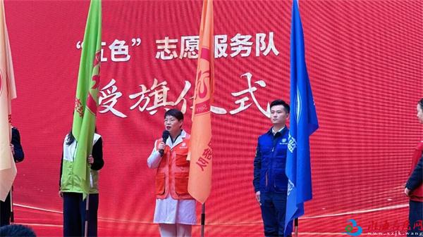 在主会场授旗环节,铜山区中医院“杏林春暖”志愿服务队正式接过民生橙志愿服务队旗帜,成为全区志愿服务“五进”行动的重要组成。队伍代表现场发出新年“新”声,承诺将持续扎根基层、贴近群众,以中医药特色志愿服务进企业、进园区、进站点、进社区、进家庭,常态化开展义诊宣教、健康科普、慢病管理、应急救护等服务,用岐黄仁术守护群众健康,用志愿行动传递组织温暖。