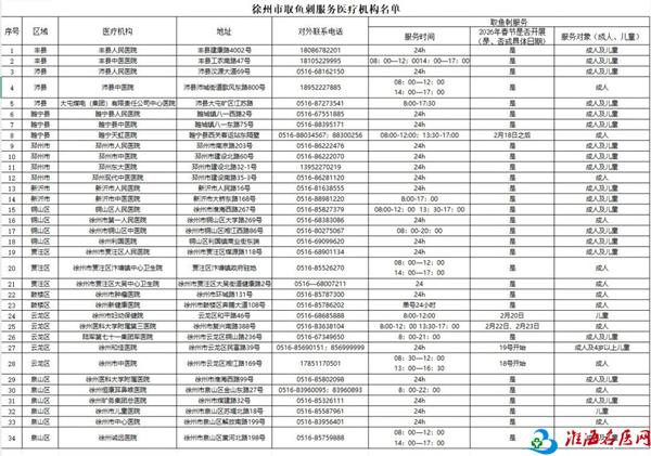 徐州市中心医院2026年春节假期工作安排