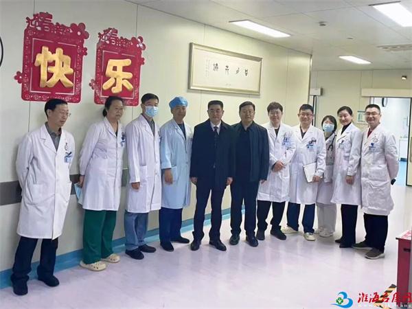 在位于本部门诊三楼的复合手术室,院领导向值班医护人员拜年,感谢大家的坚守和付出,希望“用好这个平台,为危重症患者提供‘一站式’复合手术解决方案。”