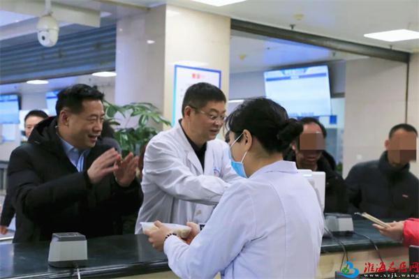 “新年好!大家辛苦了!”在门诊,院领导依次走访慰问服务台、挂号收费处、药房及各楼层诊室。