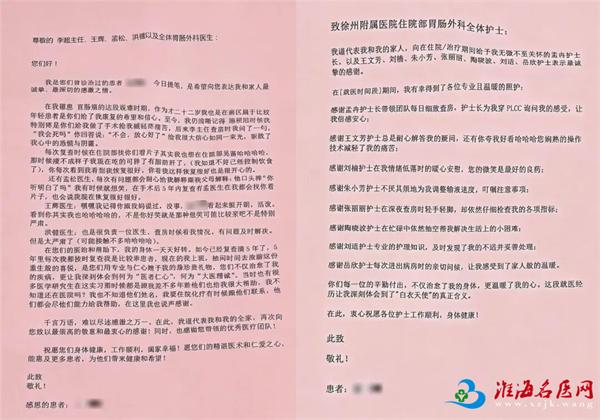 患者的康复与信任,是对医护人员最大的鼓励。一封感谢信、一面锦旗,既是患者对医护人员专业能力和优质服务的高度认可,也是徐州医科大学附属医院长期坚持规范化诊疗和人文医疗理念的真实写照。近年来,胃肠外科不断提升肿瘤综合诊疗能力,在规范化手术、围手术期管理及长期随访方面形成了完善体系,为众多消化道肿瘤患者带来了新的希望。未来,科室将继续秉持“以患者为中心”的服务理念,不断提升医疗技术水平和护理质量,为更多患者提供安全、规范、优质的医疗服务。