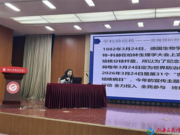 2026年3月24日是第31个“世界防治结核病日”,今年的宣传主题是“全面行动,全力投入,全民参与,终结结核”。为贯彻社会共治理念,动员全社会全面行动、全力投入,营造全民参与结核病防治工作、全民共享结核病防治成果的良好氛围,为终结结核病流行奠定坚实基础,助力健康中国建设,3月20日,鼓楼区疾控中心联合徐州市疾控中心、徐州市九里社区卫生服务中心在徐州工业职业技术学院,通过举办专题讲座、优秀结核作品展博以及“蹴鞠”和“幸运转盘”趣味答题活动的方式开展结核病防治知识的宣传活动。