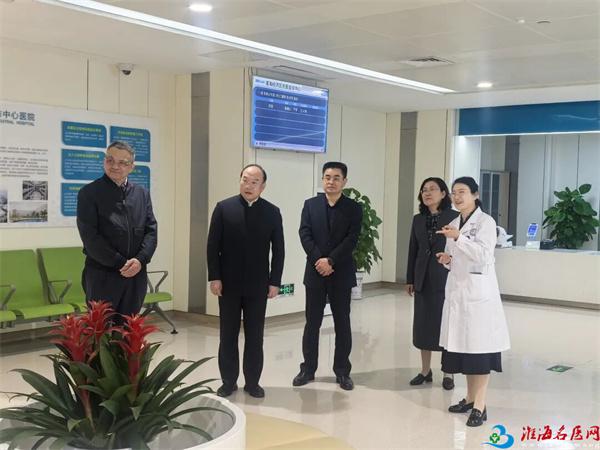 在本部门诊,郑宁一行先后参观了甲状腺乳腺专病中心、上海华山医院——徐州市中心医院联合门诊和口腔诊区。在位于门诊5楼的“上海华山医院——徐州市中心医院联合门诊”诊区,双方就2024年4月徐州市中心医院挂牌“复旦大学附属华山医院徐州合作医院”、联合门诊开诊以来的工作进行了简要的回顾和总结,肯定了双方合作以来在门诊坐诊、学术交流、疑难病例会诊等方面做出的成绩。
