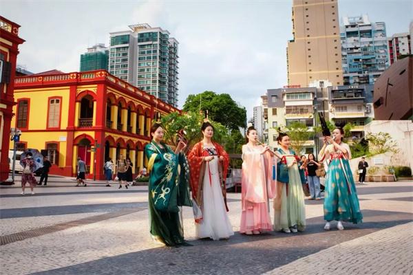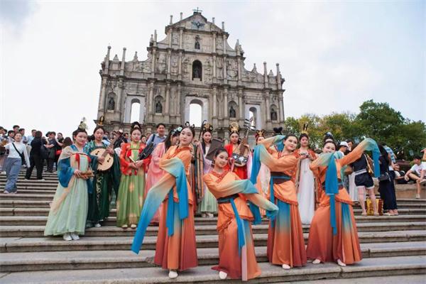 活动期间,徐州汉文化展演团队走进澳门劳校中学,通过沛筑演奏、汉乐普及、乐器体验等形式,与在校学生开展互动交流。展演团队还来到大三巴牌坊、塔石广场等澳门地标,上演精彩的汉文化主题快闪。