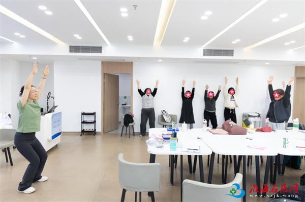 “大家跟着我,慢慢抬起手臂,配合呼吸,不要憋气……”上午10:00,孕妇学校活动区变身“孕期运动课堂”,糖尿病孕妈妈专属运动课正式开始。由健康管理中心孕产运动指导师张倩老师现场指导,课程专门针对妊娠期高血糖孕妈设计,融合了上肢拉伸、坐姿抗阻、原地踏步等低冲击有氧动作,既保证安全又能有效辅助控糖。