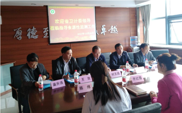 2017年10月26日上午10:00江苏省卫生监督所时玉昌所长、吴涛处长,徐州市卫计委王凯处长、张义田副主任,市疾控中心苗升浩科长等五位领导对徐州市儿童医院2017年度食源性疾病监测工作进行了全面检查。徐州市儿童医院曹军华院长、齐红霞副院长迎接检查并讲话。