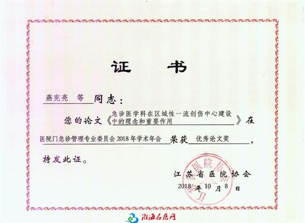 10月12日召开了医院门急诊管理专业委员会2018年学术年会,来自省内外的管理专家就提高患者的体验度,服务与创新,高效团队的建设,智慧医院的管理,急诊在三大中心建设中的作用和地位等主题展开交流。徐医附院作为医院协会会员单位,积极响应本次年会的征文活动,踊跃投稿,经省专家评审,《急诊医学科在区域性一流创伤中心建设中的理念和重要作用》和《精细化管理在门诊投诉管理中的应用效果》被评为优秀论文。