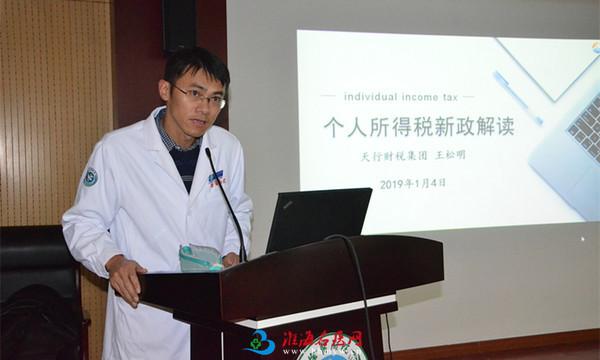 修订后的《中华人民共和国个人所得税法实施条例》自2019年1月1日起施行。此次税改,税负下降明显,而新增的专项附加扣除政策既是改革亮点、也是实施难点。为帮助全院职工更好地理解新税制、用好政策红利,2019年1月4日下午,财务处在病房主楼21层第二会议室组织开展“个人所得税新政解读”专题培训。财务处毛宇辉处长主持培训,天行财税集团王松明主任受邀担任主讲,全院各科室职工代表近200人参加培训。