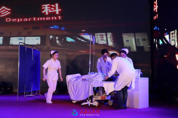 情景剧暨急诊室故事第四季《卒中不卒情》讲述了急诊室随时待命的卒中取栓小组一名医生过生日当天,接到命令,奔赴医院开启绿色通路,抢救患者生命的故事。小品《责任苦旅》则是全场的笑点,把新婚妻子查出罹患淋巴瘤,小夫妻面对自己的责任与担当,怎样去度过一场心灵的修炼苦旅。舞台剧《爱洒边疆》以援疆干部晁亚丽救助维吾尔族姑娘凯丽的故事为蓝本,展现徐医附院援疆专家克服困难、发扬传统,在为新疆人民带去健康的同时,也带去真诚的友谊,真正做到“技术援疆、科学援疆、真情援疆”。