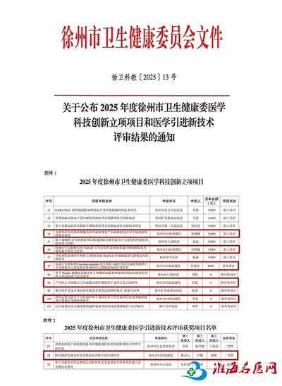 徐州健康:喜报频传,硕果盈枝!近日,徐州市妇幼保健院在2025年度徐州市卫生健康委医学科技创新项目申报和医学引进新技术评估工作中表现优异,共有5个项目获批立项,并获评1项医学引进新技术