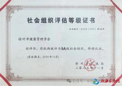 喜讯!徐州市健康管理学会荣膺5A级社会组织殊荣